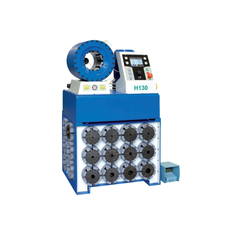 Станок для РВД TUBOMATIC H130 ES c электронной системой управления подходит для опрессовки гидравлических рукавов до 1 1/4" с шестью навивками (R13/R15), до 2" с четырьмя навивками (4SP/4SH) и промышленных рукавов до 3". Отличительной особенностью данного станка является его больший диаметр опрессовки и раскрытие кулачков, что значительно упрощает работу с угловыми фитингами. Этот пресс для РВД используется в мелкосерийном производстве, например, в мастерских по изготовлению и ремонту рукавов высокого давления.